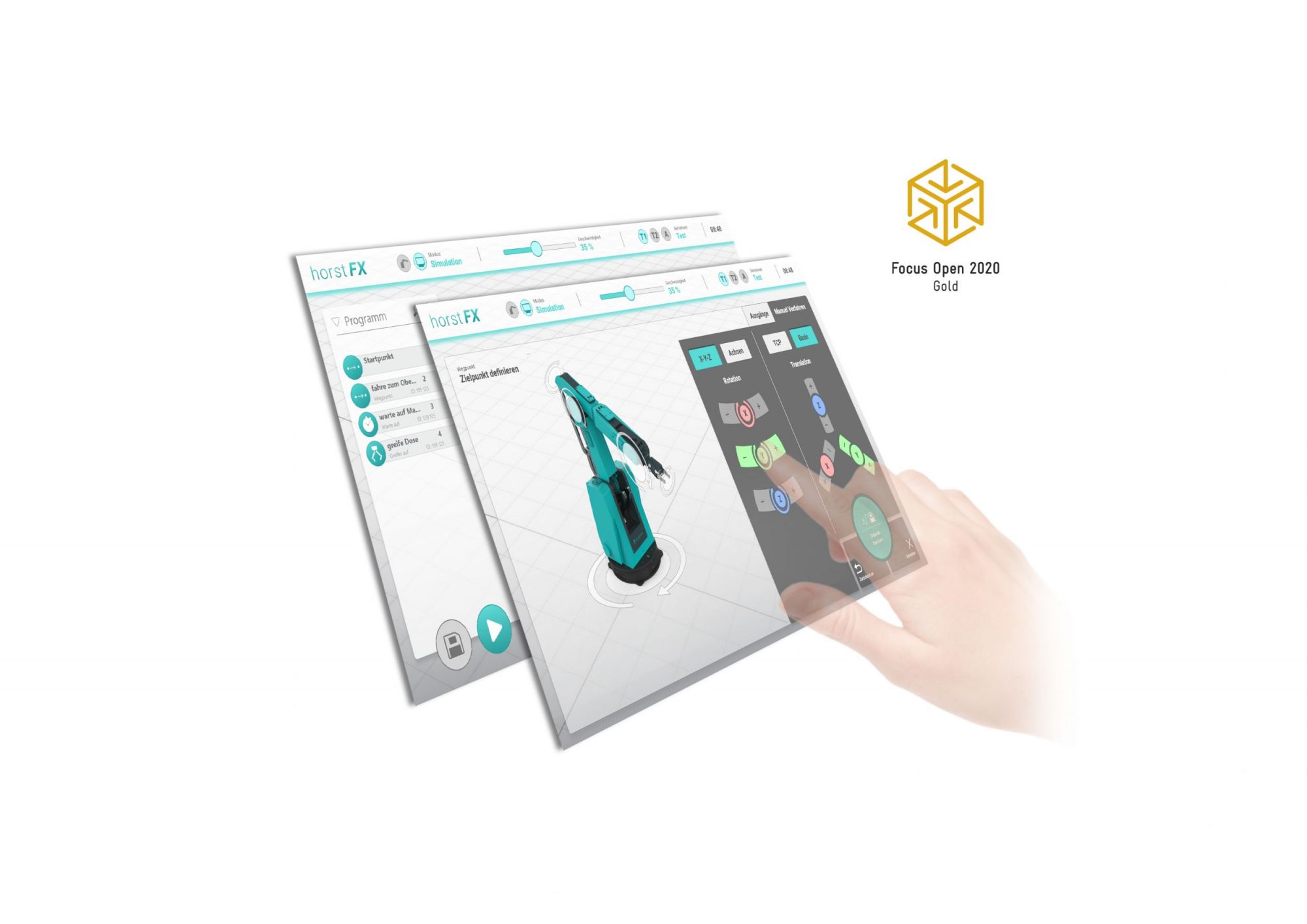 Mit horstFX bedient der Anwender über einen ergonomischen 13,3-Zoll-Touchscreen die Industrieroboter der fruitcore robotics GmbH. Die Software ermöglicht die Programmierung des Roboters mittels einer grafischen Benutzeroberfläche und sorgt für eine schnelle und einfache Umsetzung von Automatisierungslösungen ohne jegliche Fach- und Programmierkenntnisse.