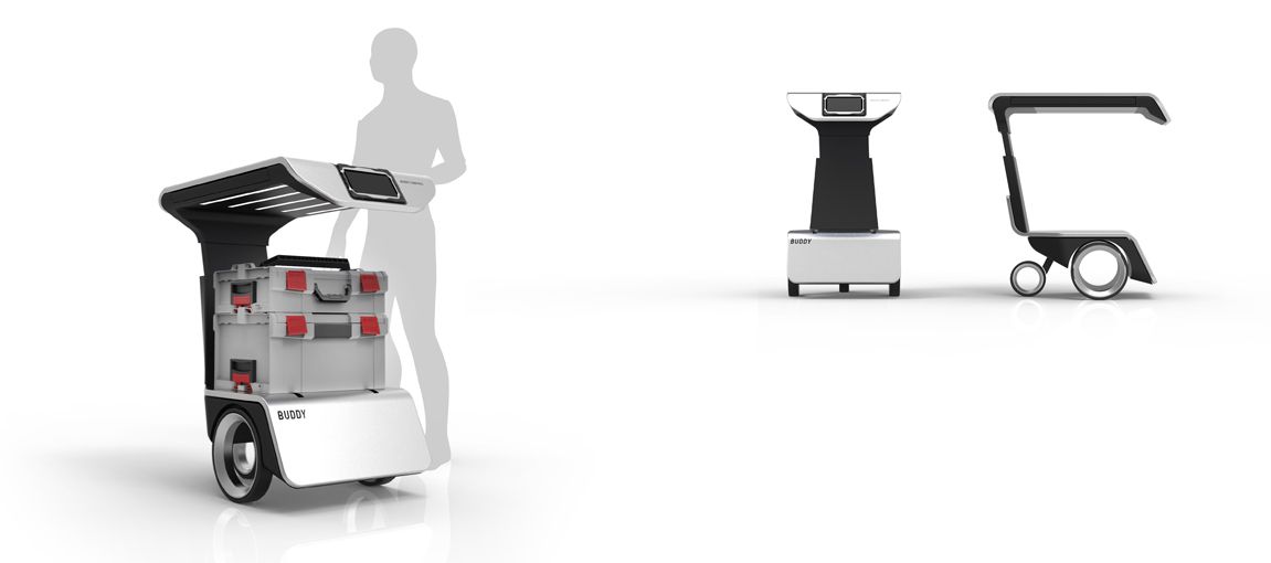 Als autonomer Helfer und Fahreinheit unterstütz Buddy den Arbeiter beim Transport von Waren innerhalb von Firmen. Durch seine flexiblen Aufnahmen kann er unterschiedlichste Waren aufnehmen und integriert sich bestens in das bestehende Arbeitsumfeld.